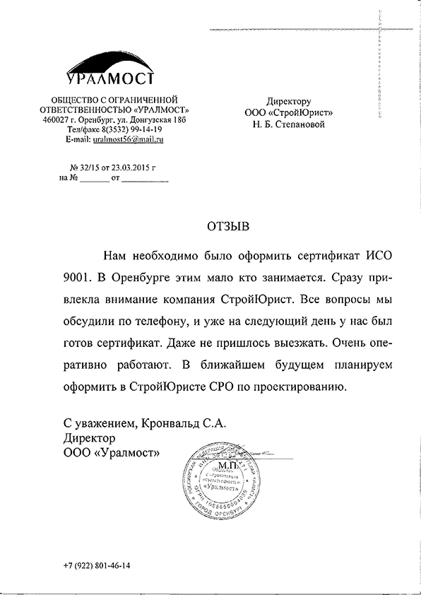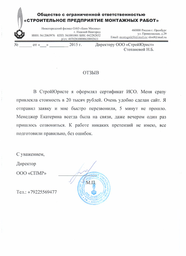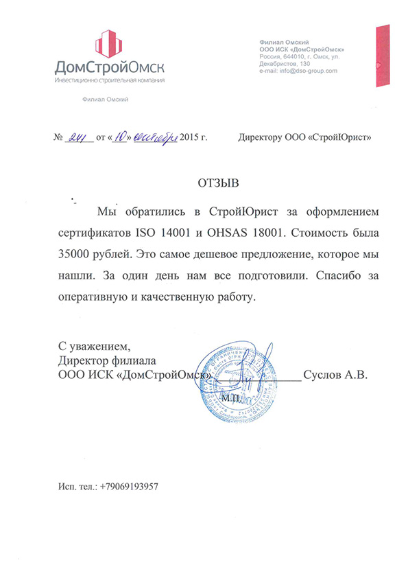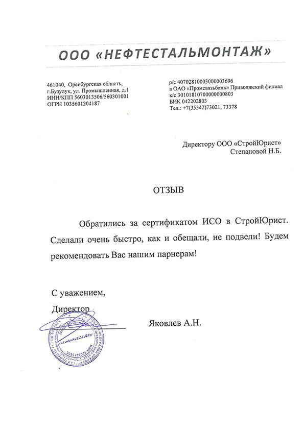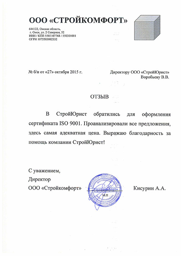 Отзывы клиентов "СтройЮрист" по ISO в Жуковском