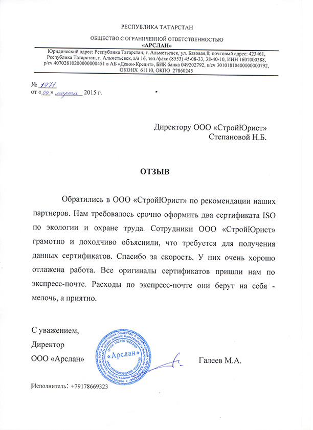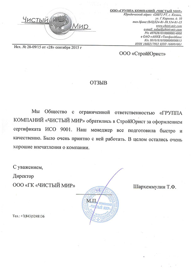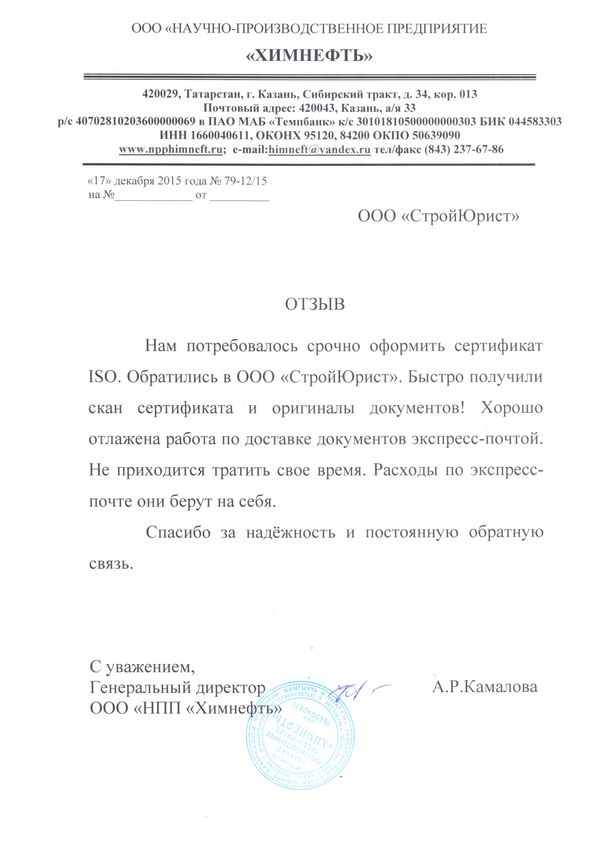 Отзывы клиентов "СтройЮрист" по ISO в Жуковском