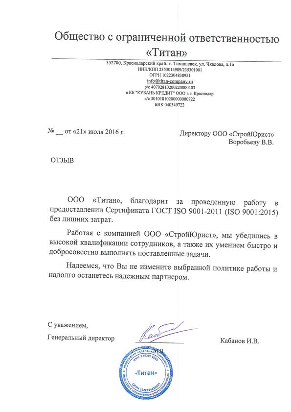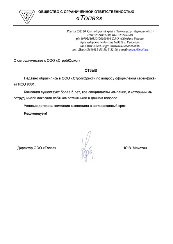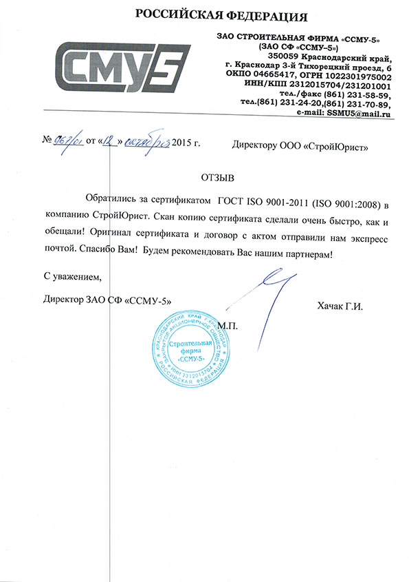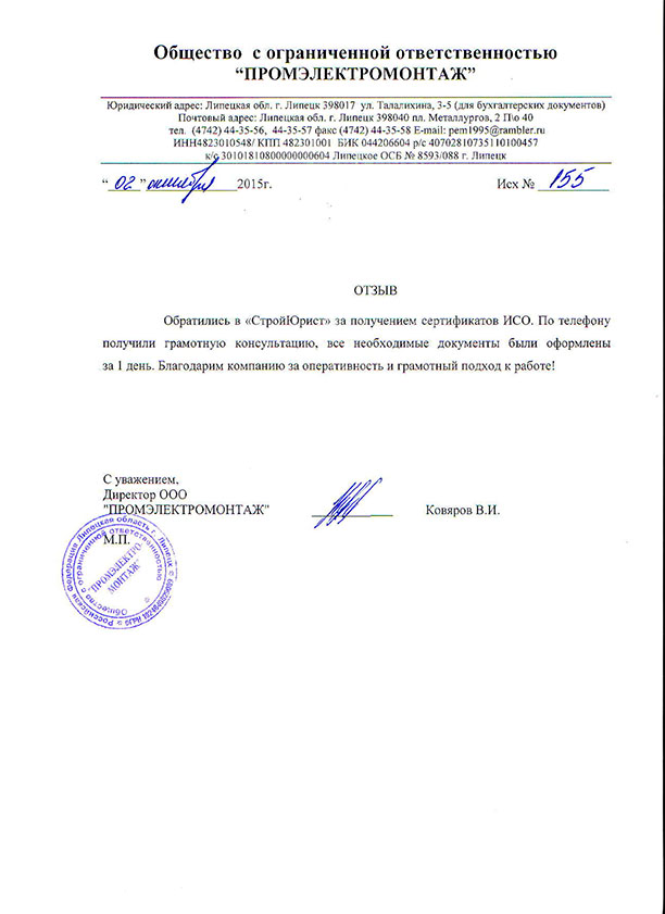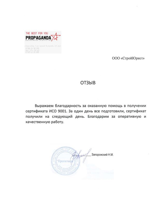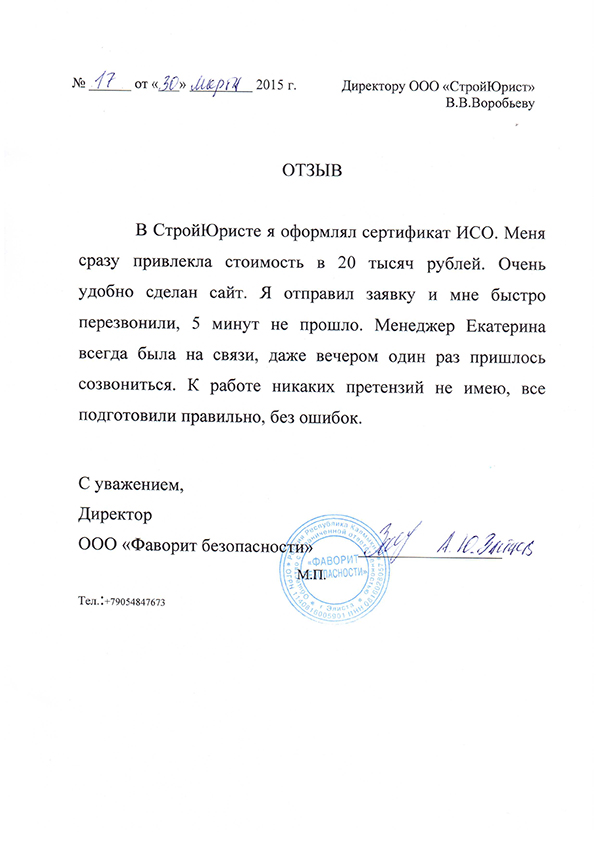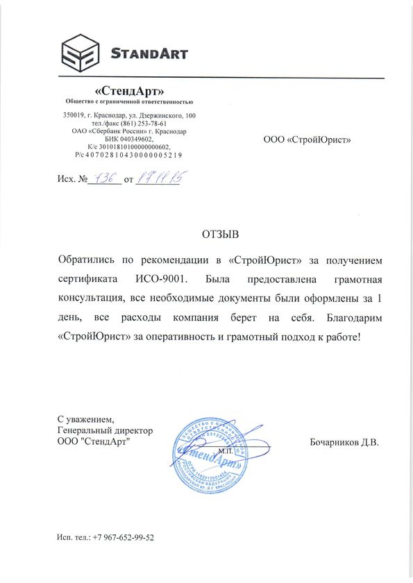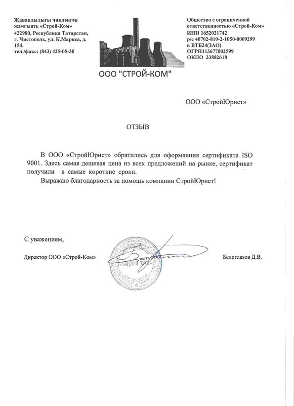 Отзывы клиентов "СтройЮрист" по ISO в Жуковском