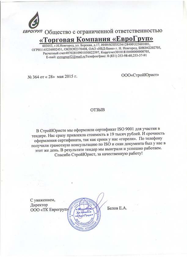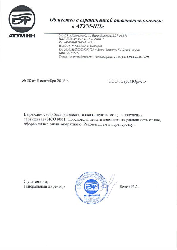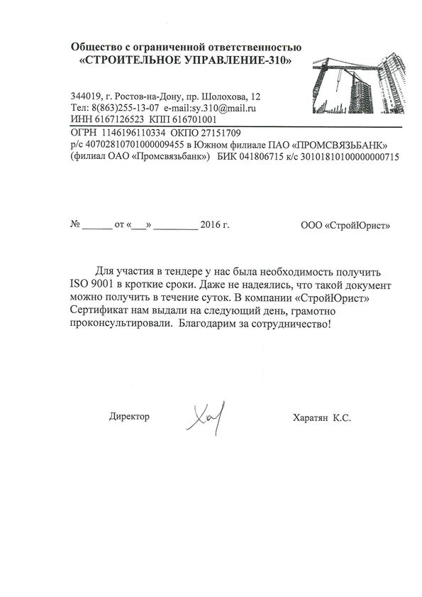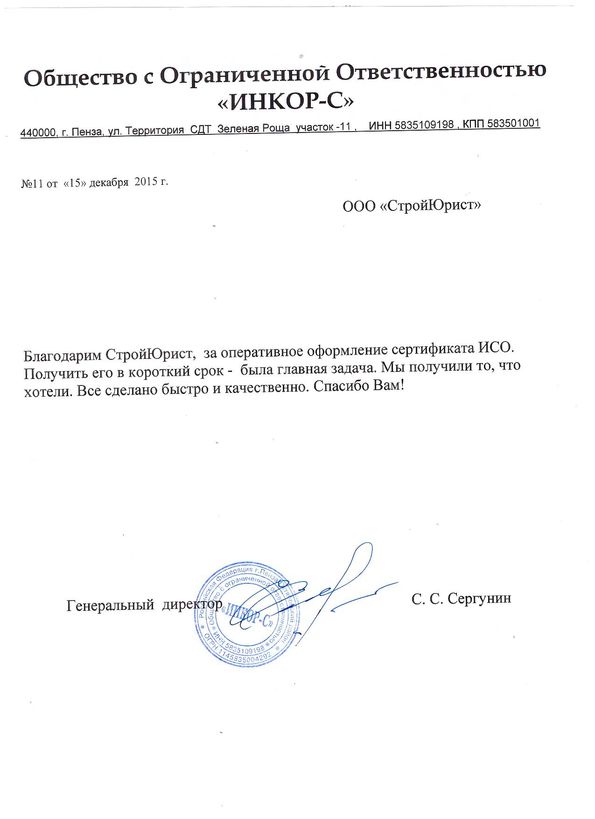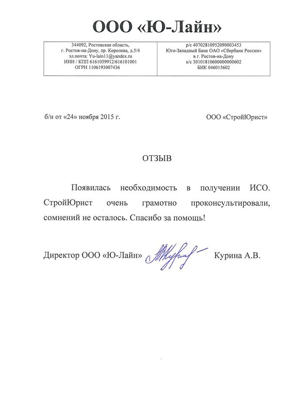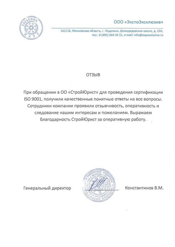 Отзывы клиентов "СтройЮрист" по ISO в Жуковском