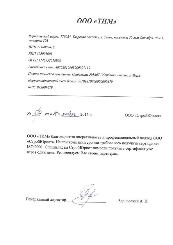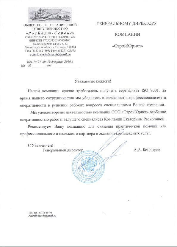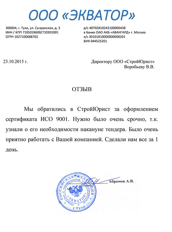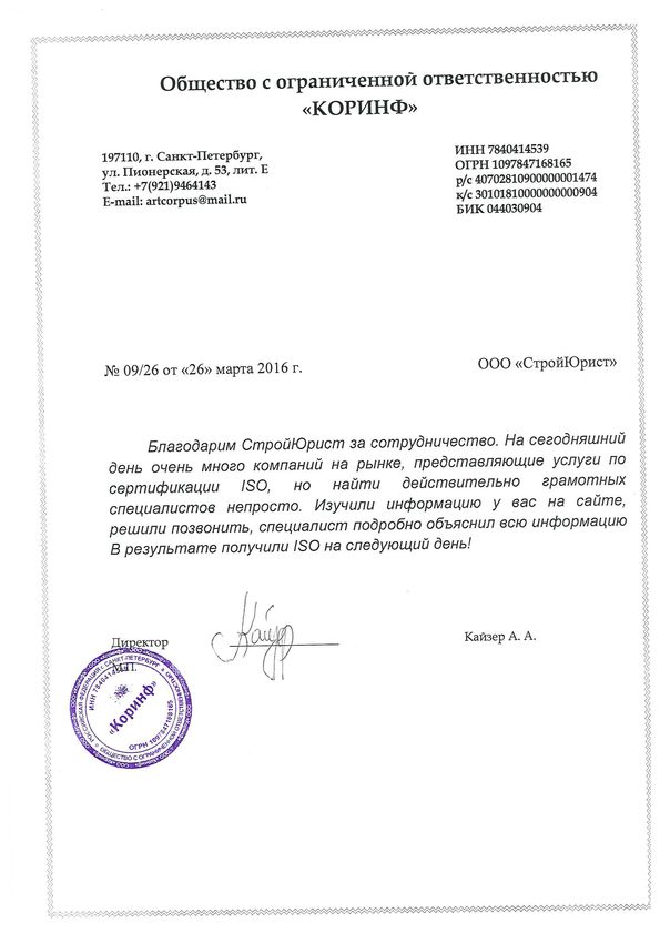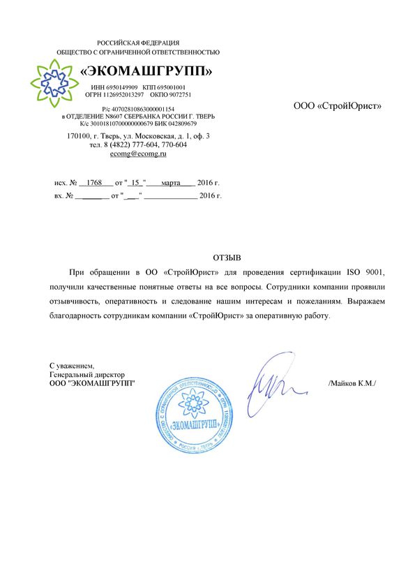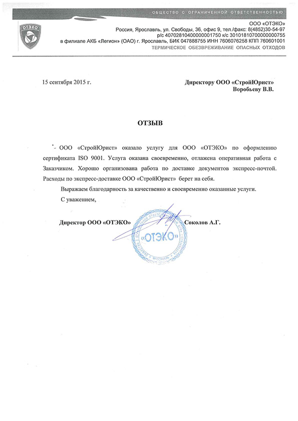 Отзывы клиентов "СтройЮрист" по ISO в Жуковском