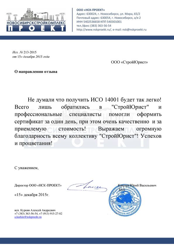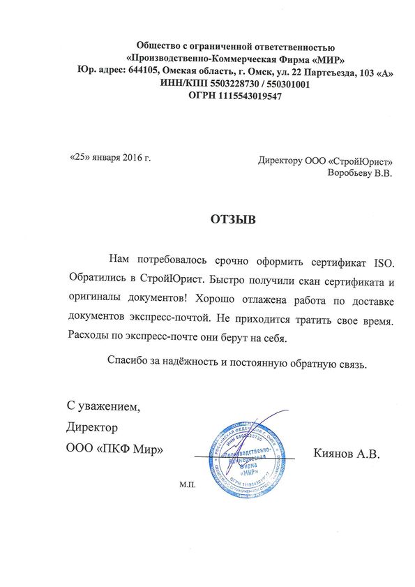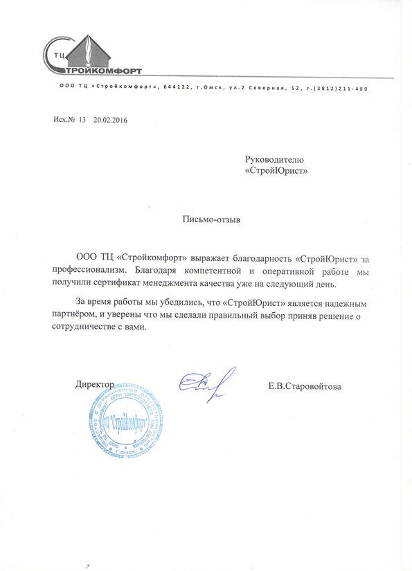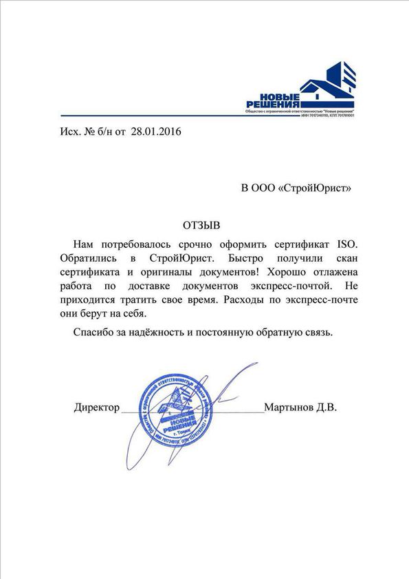 Отзывы клиентов "СтройЮрист" по ISO в Жуковском