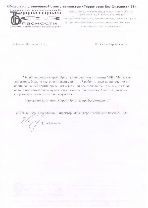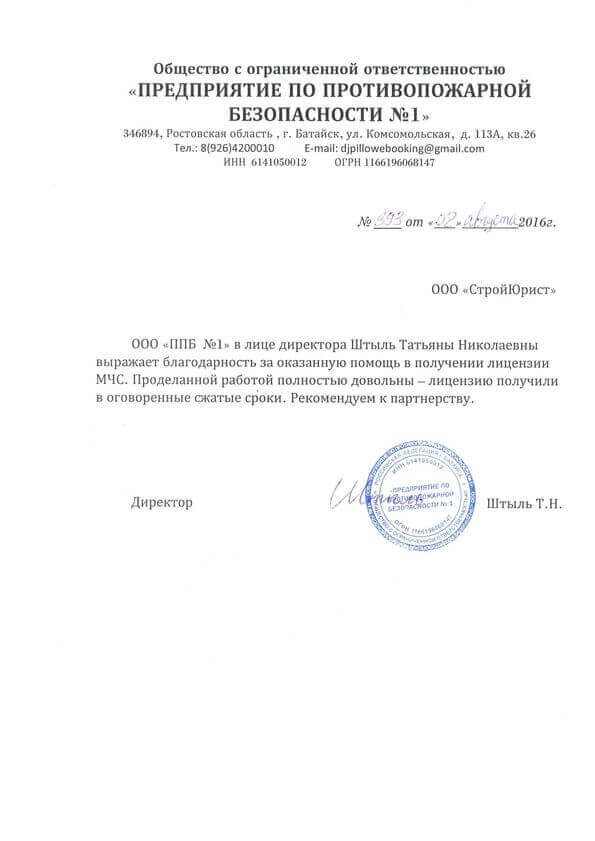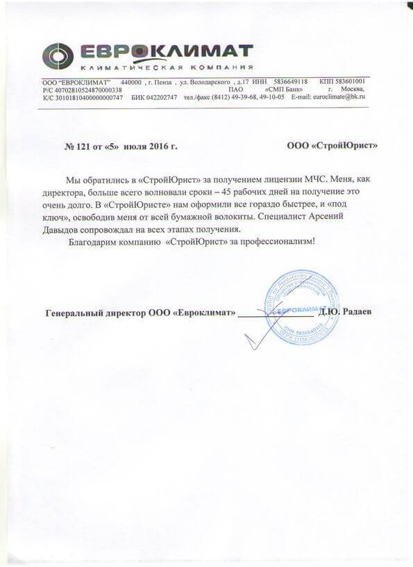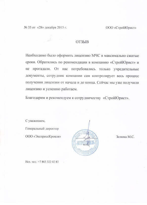 Отзывы клиентов "СтройЮрист" по лицензированию МЧС в Жуковском