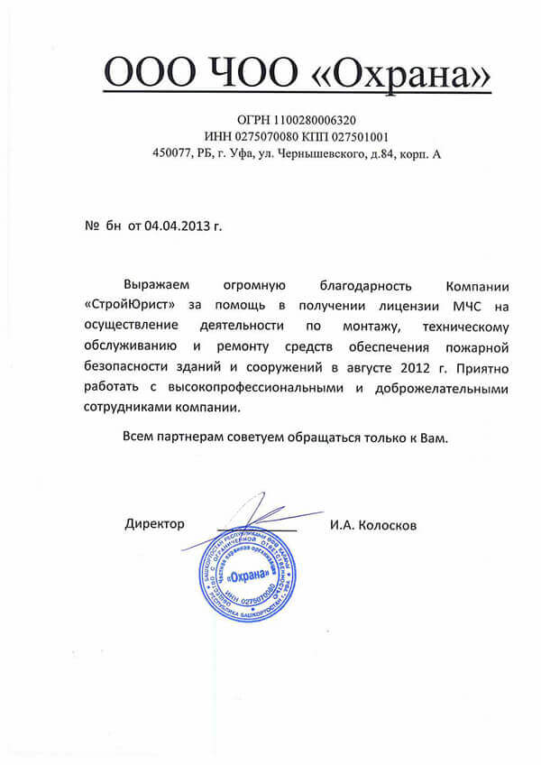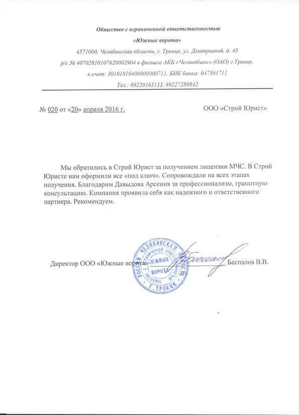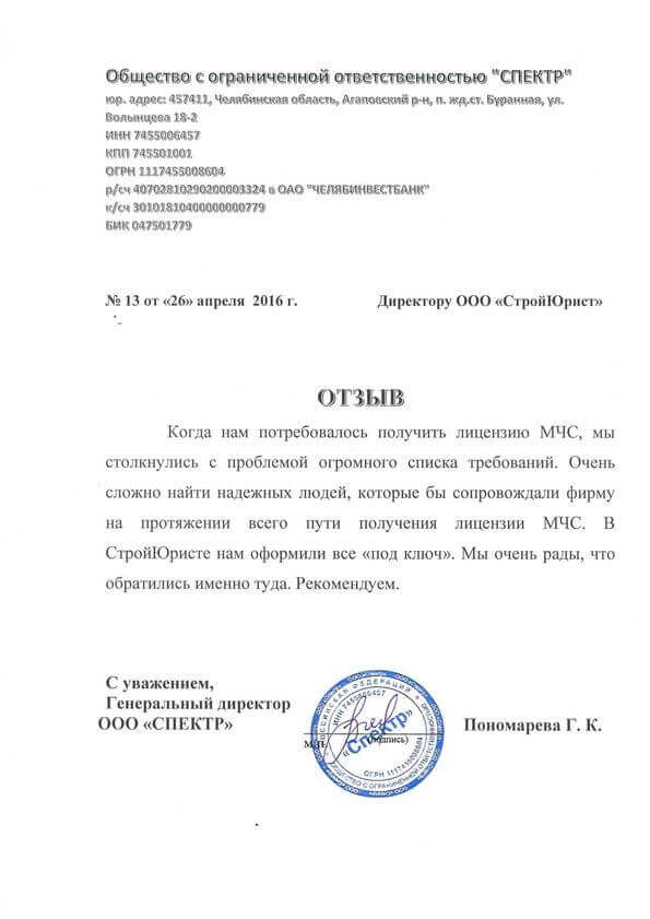 Отзывы клиентов "СтройЮрист" по лицензированию МЧС в Жуковском