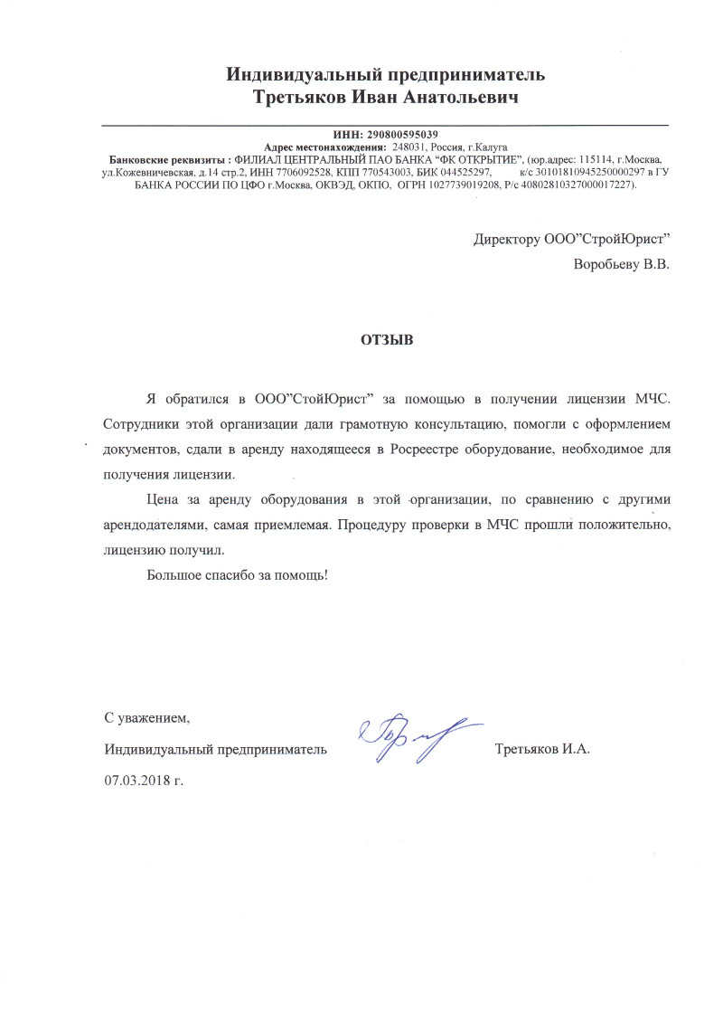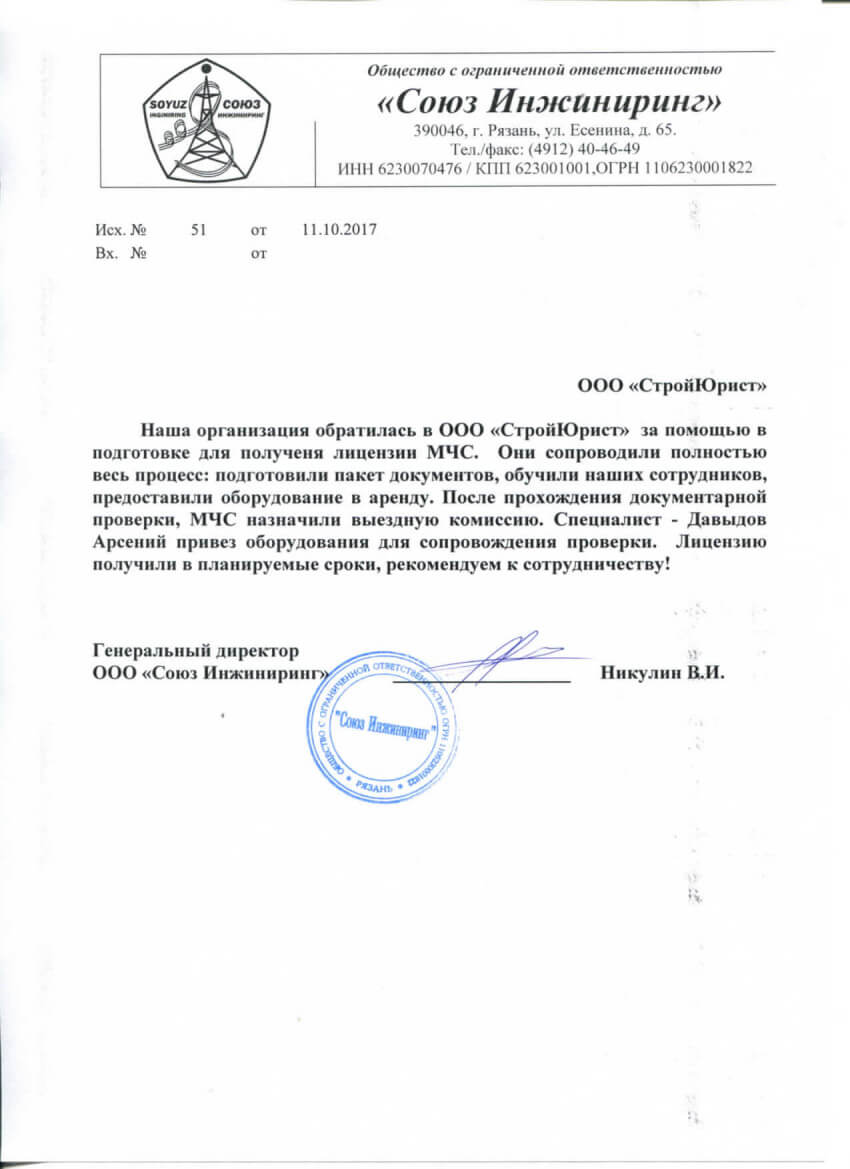 Отзывы клиентов "СтройЮрист" по лицензированию МЧС в Жуковском