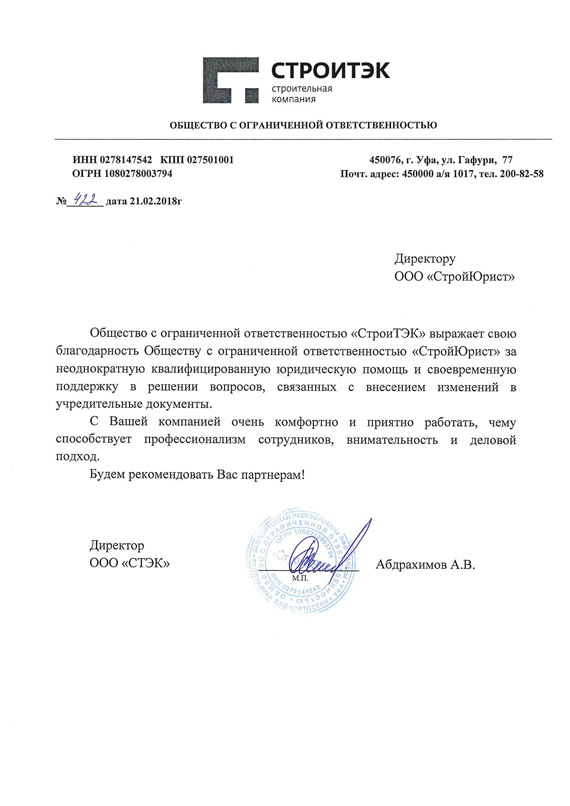 Отзывы клиентов "СтройЮрист" по регистрации фирм в Жуковском