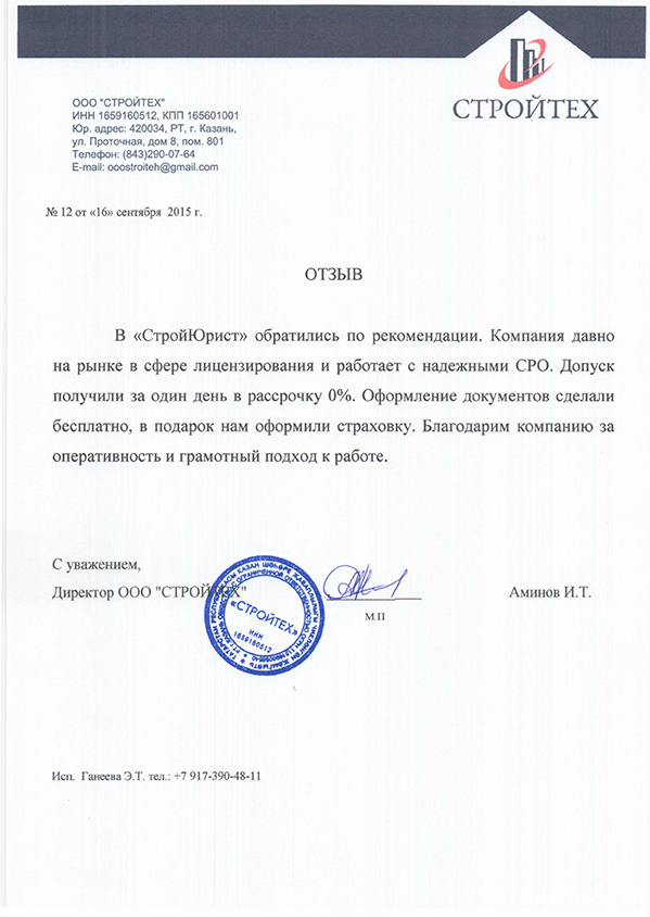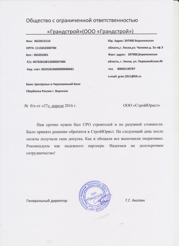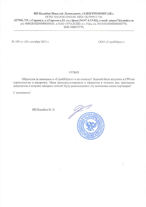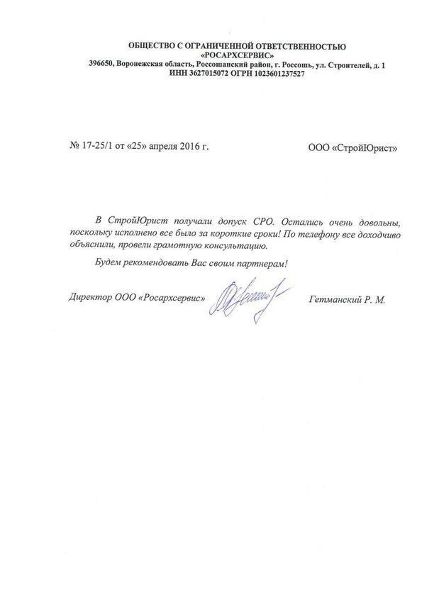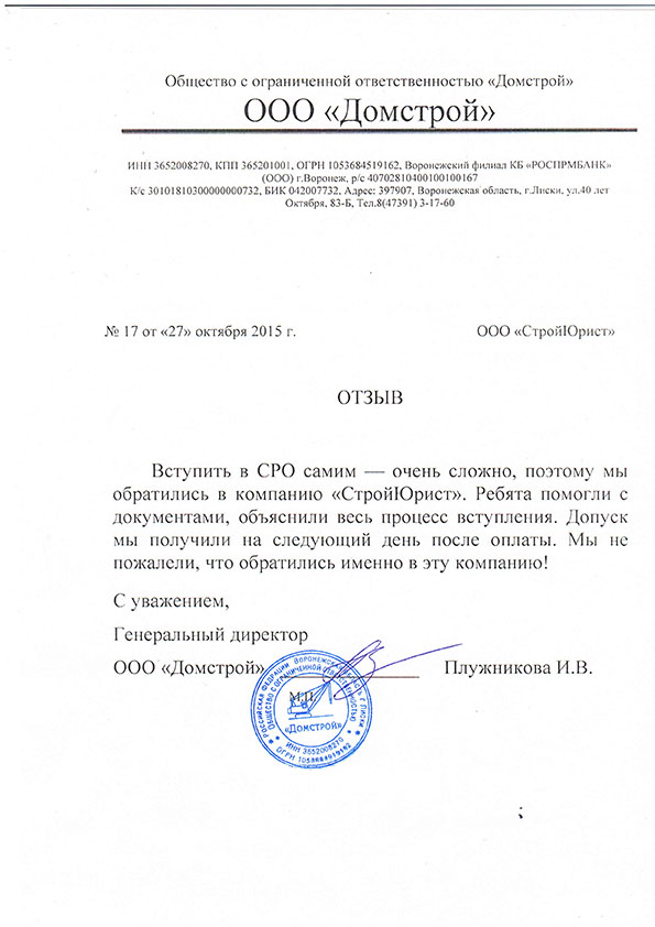 Отзывы клиентов "СтройЮрист" по вступлению в СРО в Жуковском