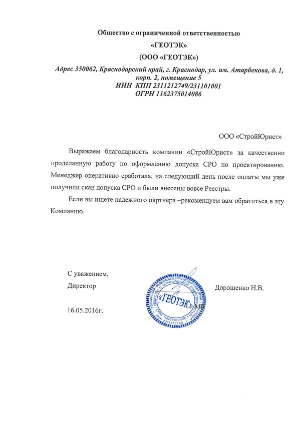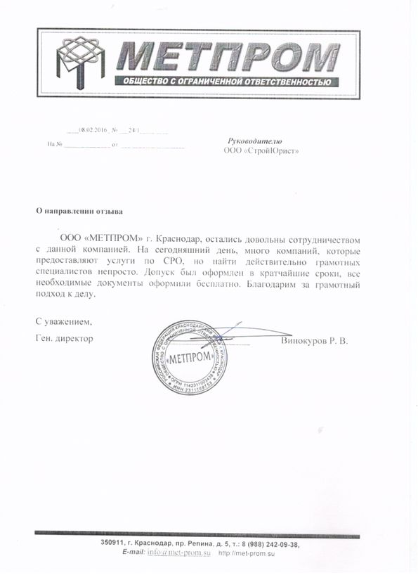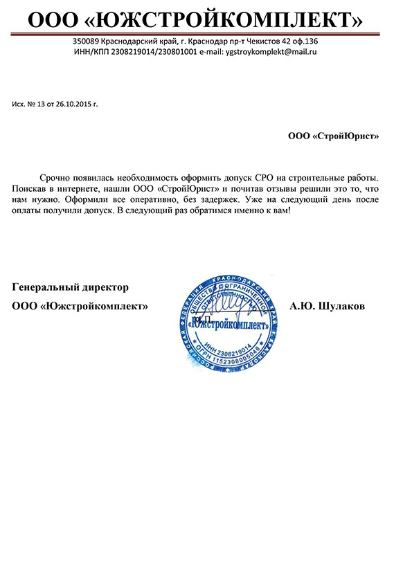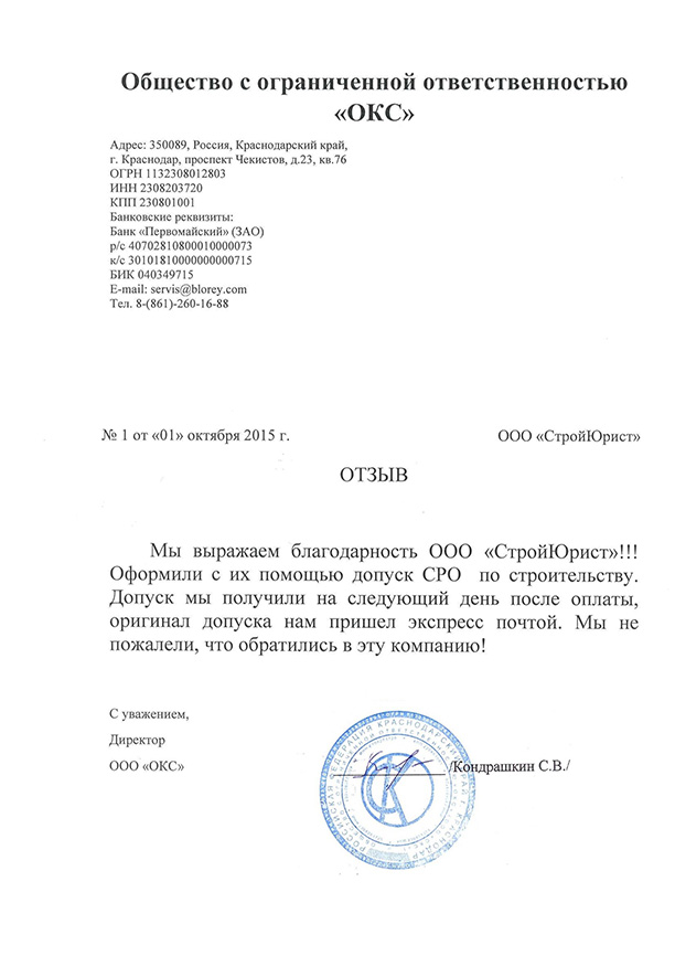 Отзывы клиентов "СтройЮрист" по вступлению в СРО в Жуковском