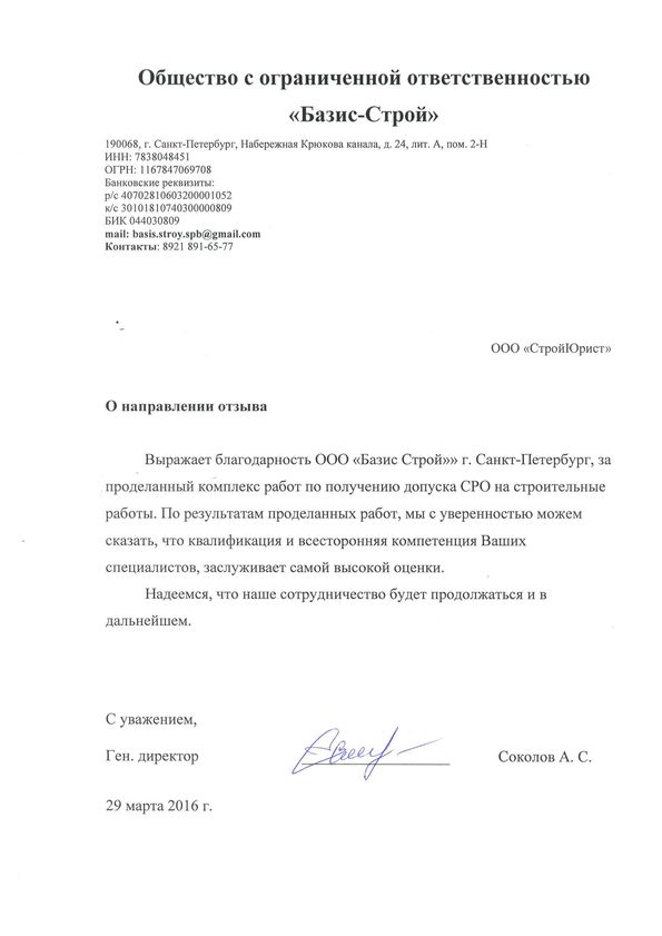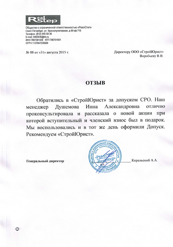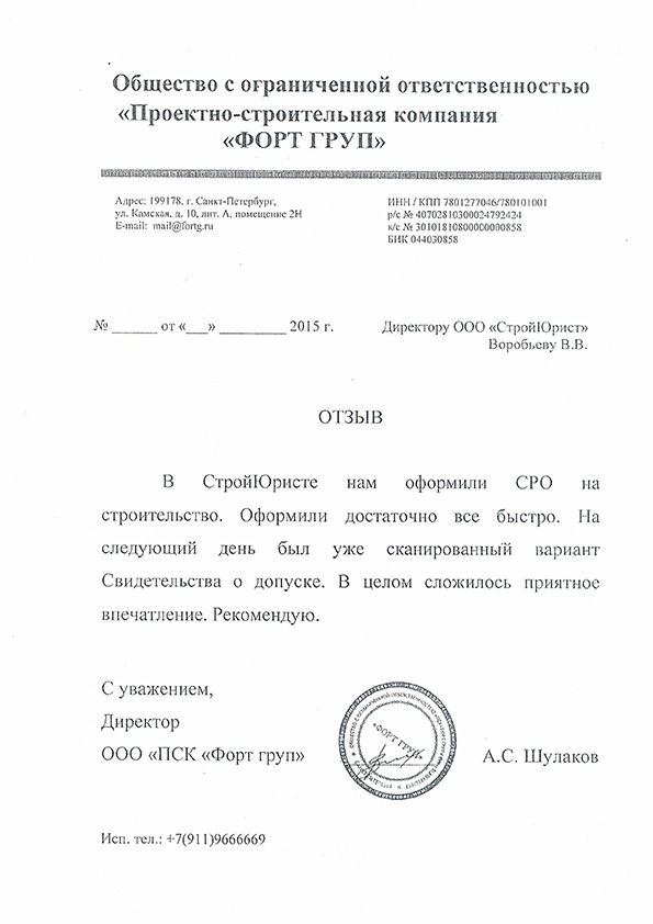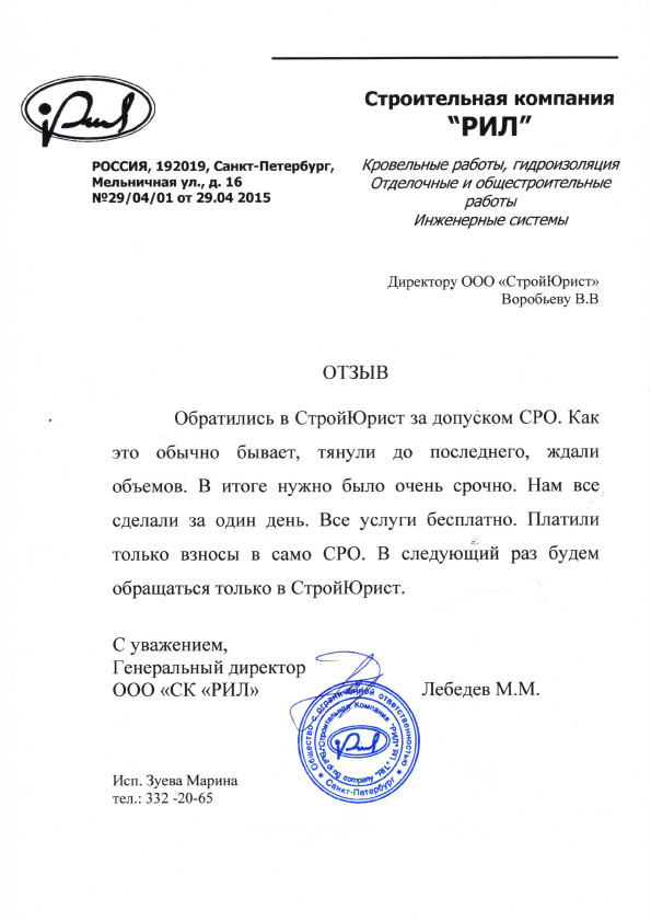 Отзывы клиентов "СтройЮрист" по вступлению в СРО в Жуковском