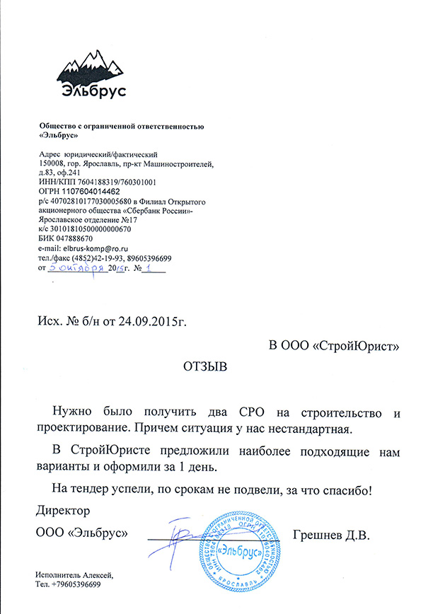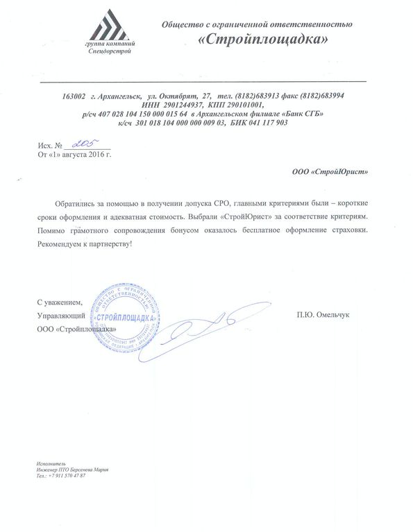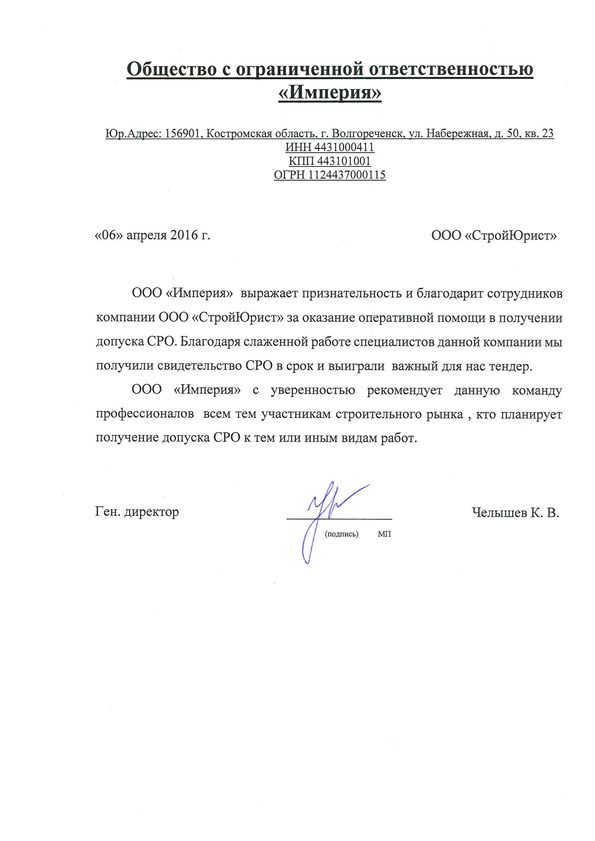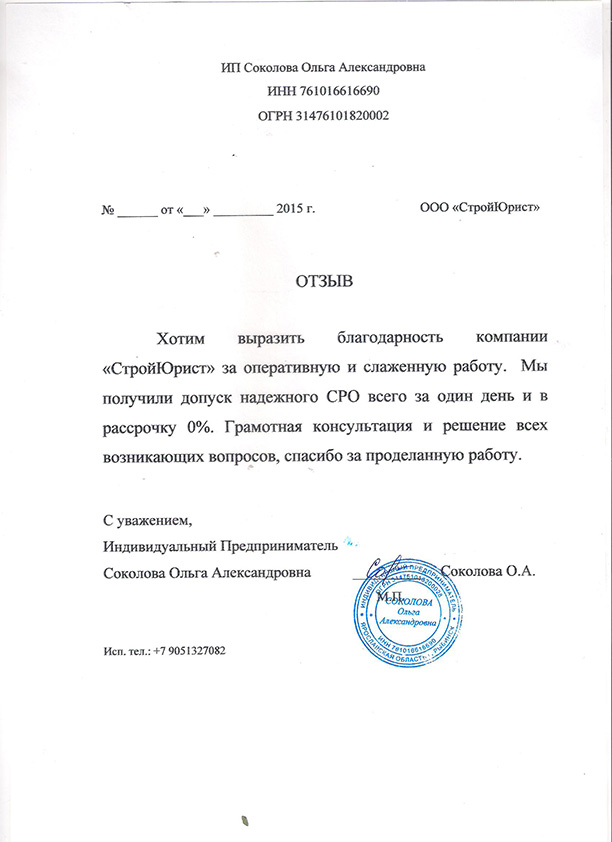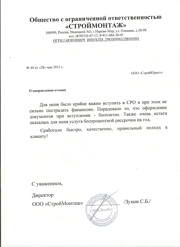 Отзывы клиентов "СтройЮрист" по вступлению в СРО в Жуковском
