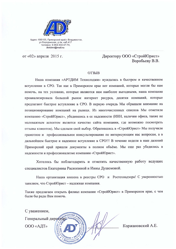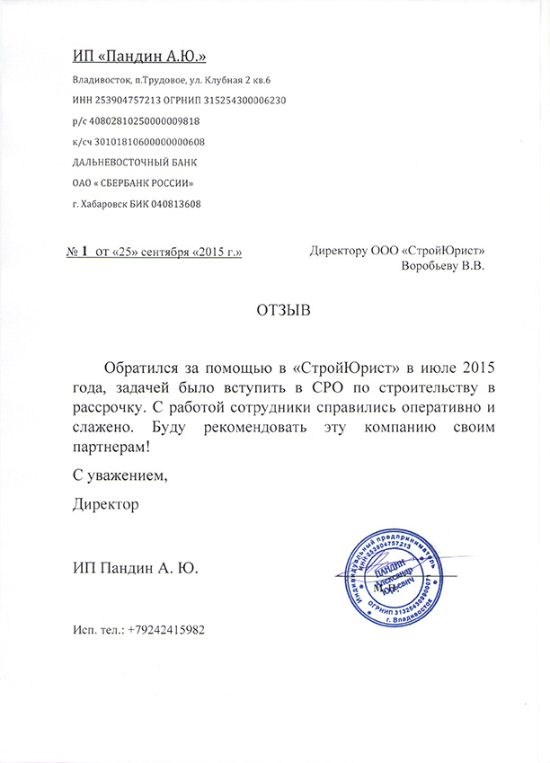 Отзывы клиентов "СтройЮрист" по вступлению в СРО в Жуковском