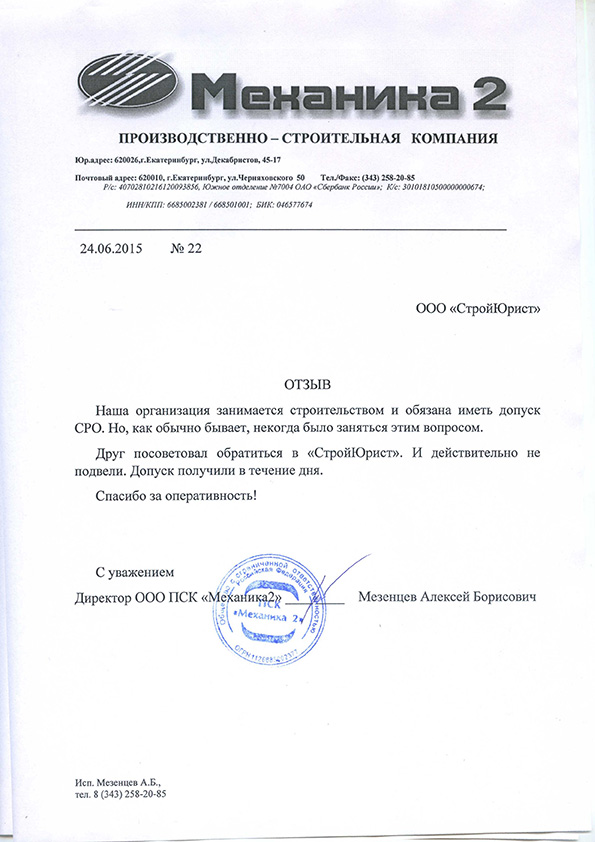 Отзывы клиентов "СтройЮрист" по вступлению в СРО в Жуковском