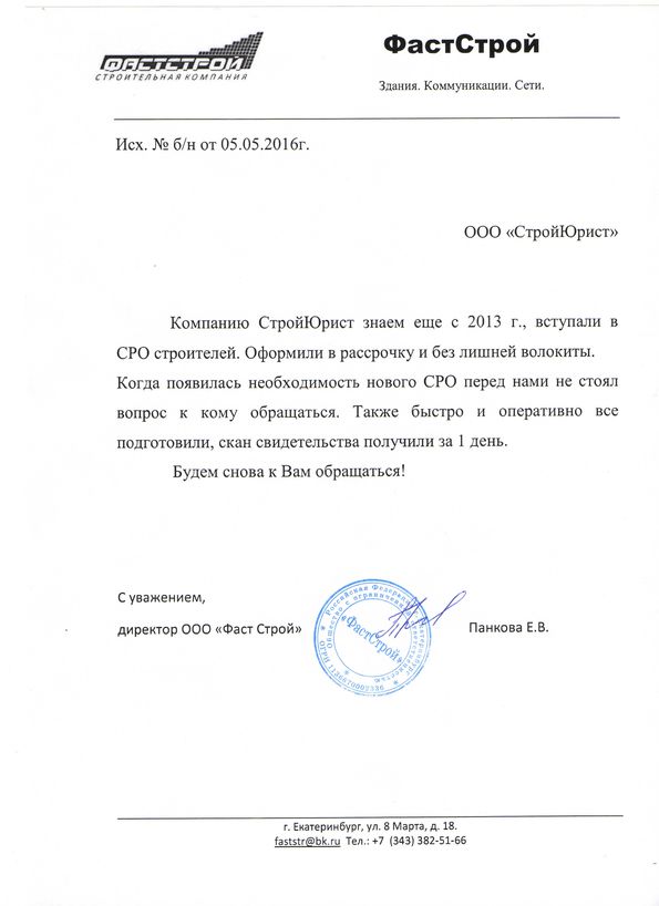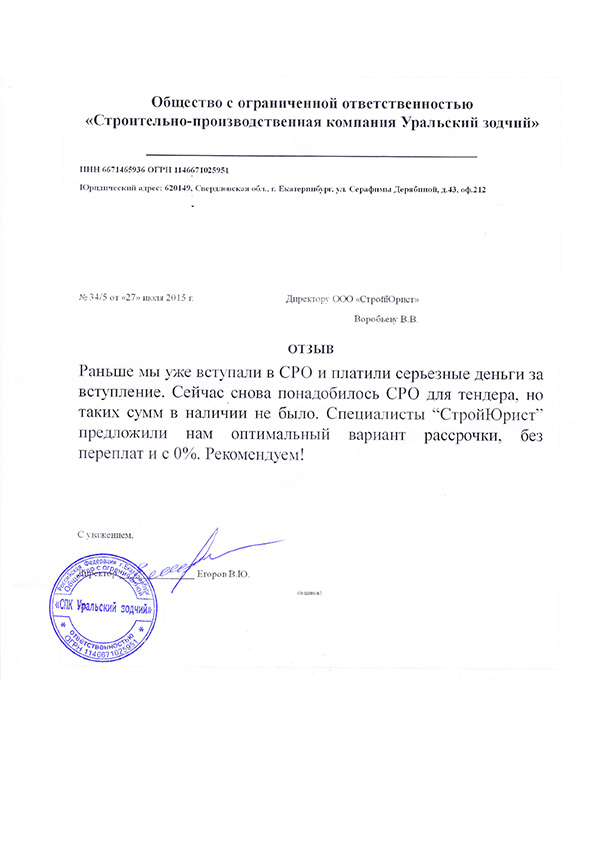 Отзывы клиентов "СтройЮрист" по вступлению в СРО в Жуковском