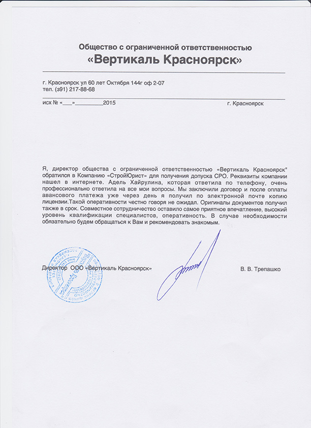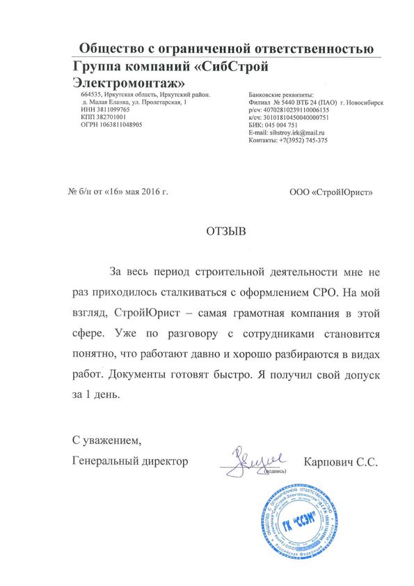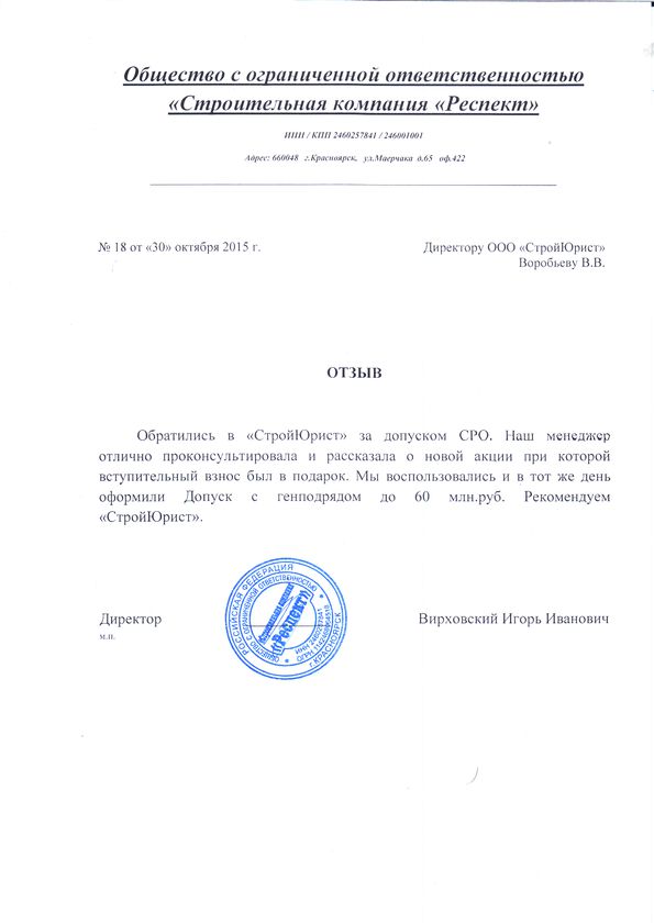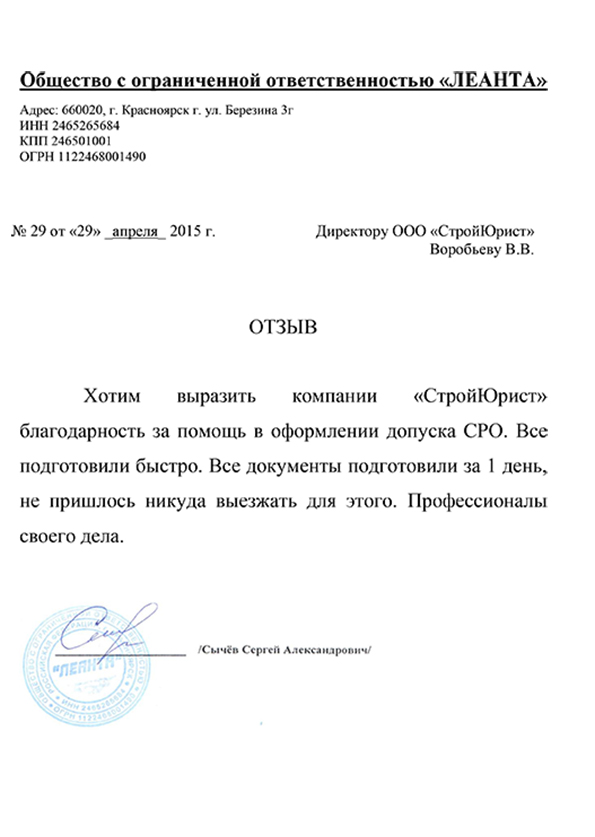 Отзывы клиентов "СтройЮрист" по вступлению в СРО в Жуковском