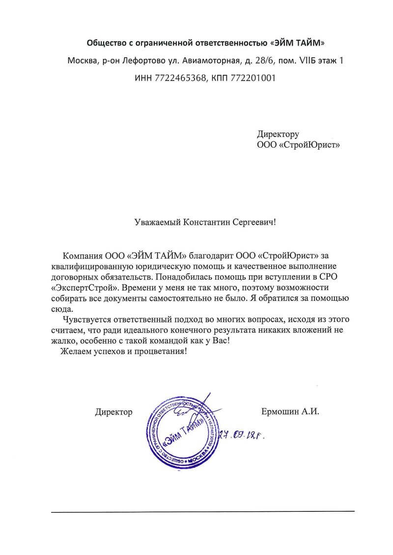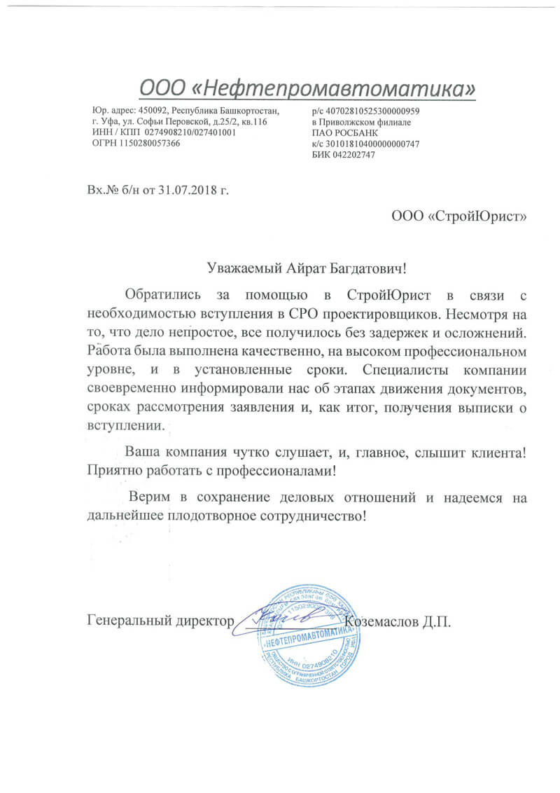 Отзывы клиентов "СтройЮрист" по вступлению в СРО в Жуковском
