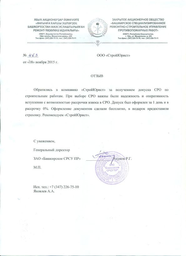 Отзывы клиентов "СтройЮрист" по вступлению в СРО в Жуковском