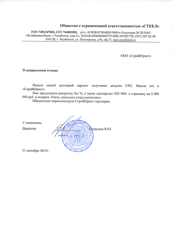 Отзывы клиентов "СтройЮрист" по вступлению в СРО в Жуковском