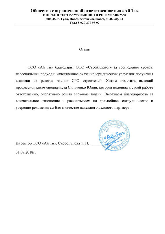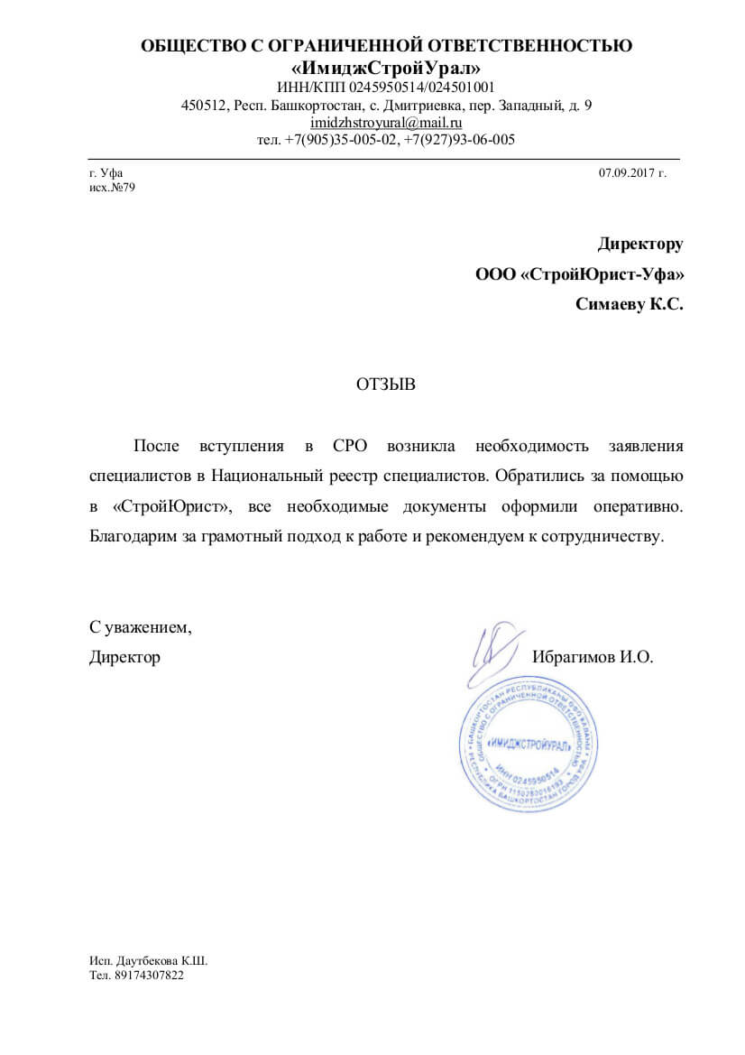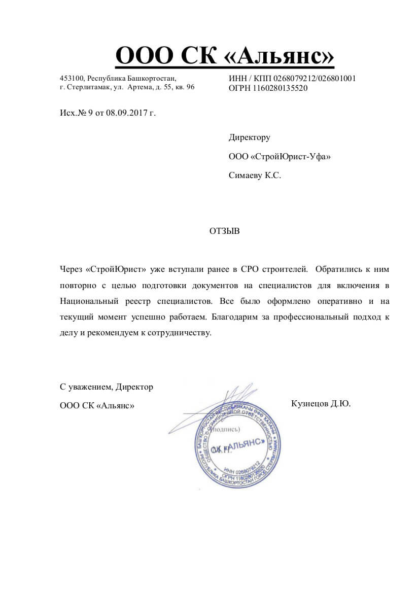 Отзывы клиентов "СтройЮрист" по вступлению в СРО в Жуковском