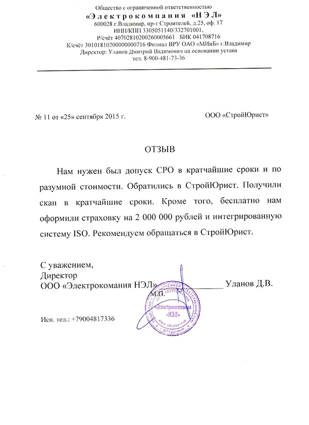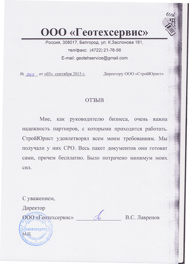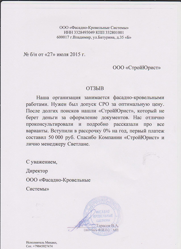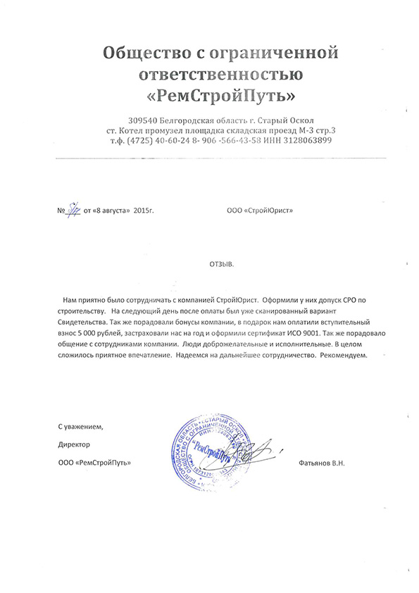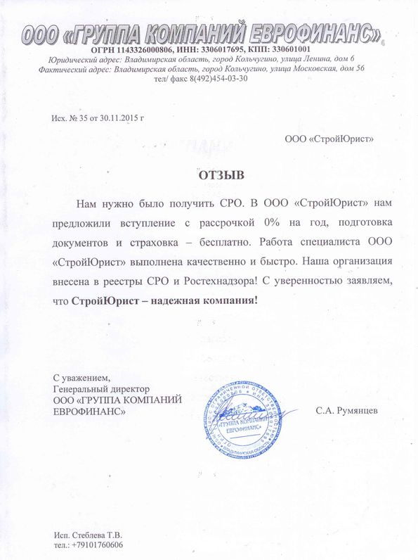 Отзывы клиентов "СтройЮрист" по вступлению в СРО в Жуковском