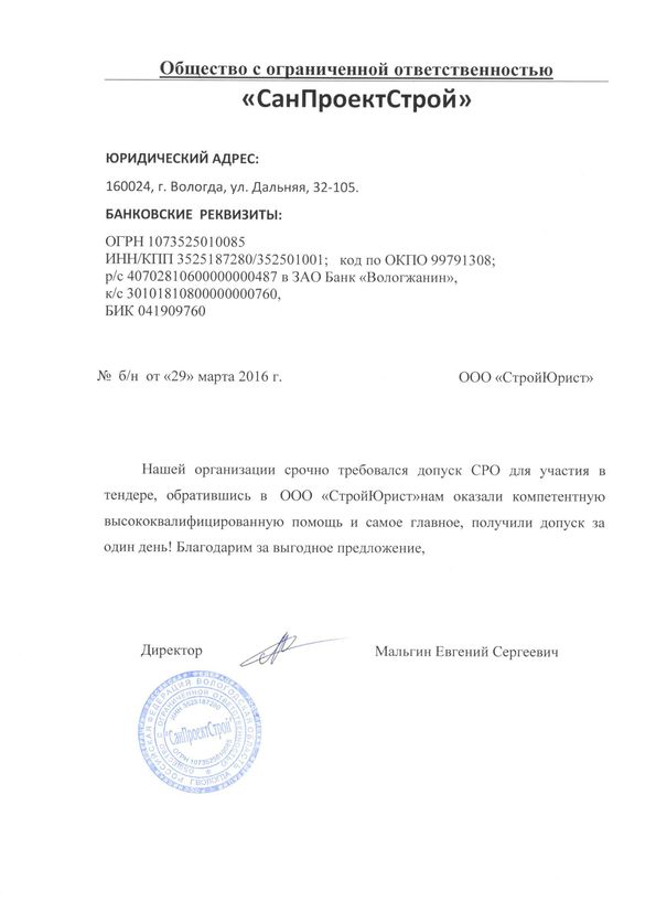 Отзывы клиентов "СтройЮрист" по вступлению в СРО в Жуковском